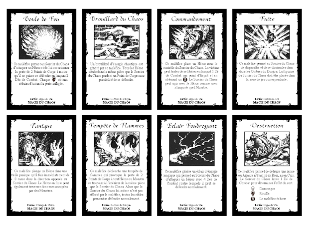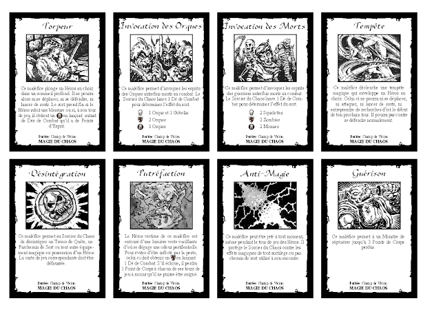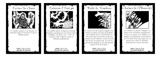 De la magie, il en faut aussi pour le meneur de jeu. Voici donc les cartes Magie du Chaos qui feront désormais partie de l’attirail de tout bon Sorcier du Chaos qui se respecte. Plutôt que de poster les images que j’utilise pour mes cartes, je me suis dit que cette fois-ci ce serait peut-être pas mal de poster les cartes elles-mêmes, histoire de voir de quoi il retourne avec ces fichiers.