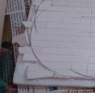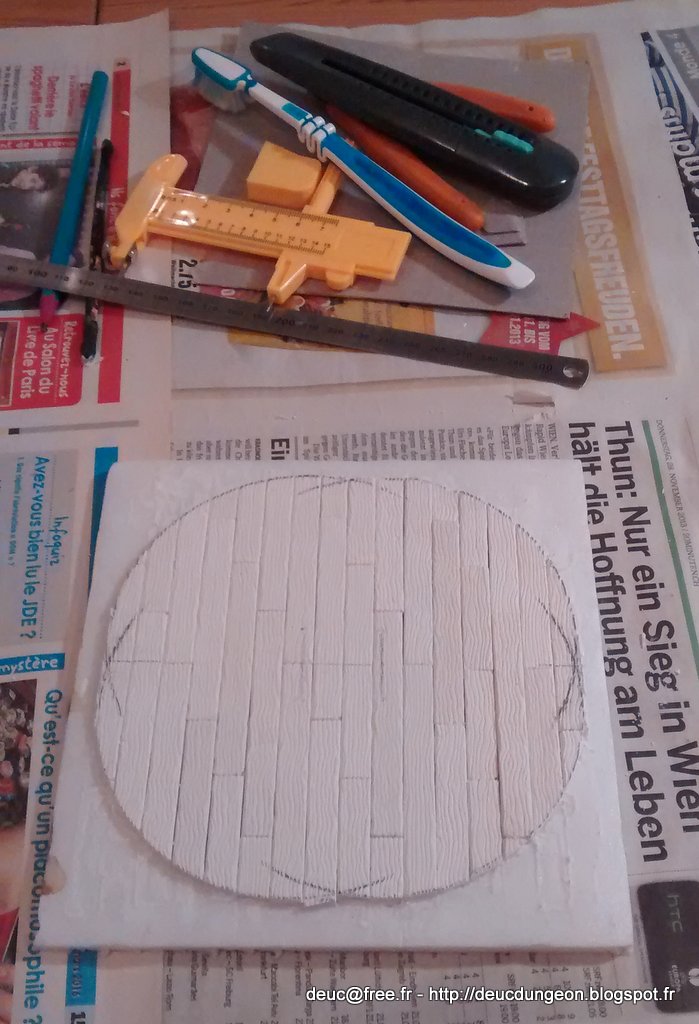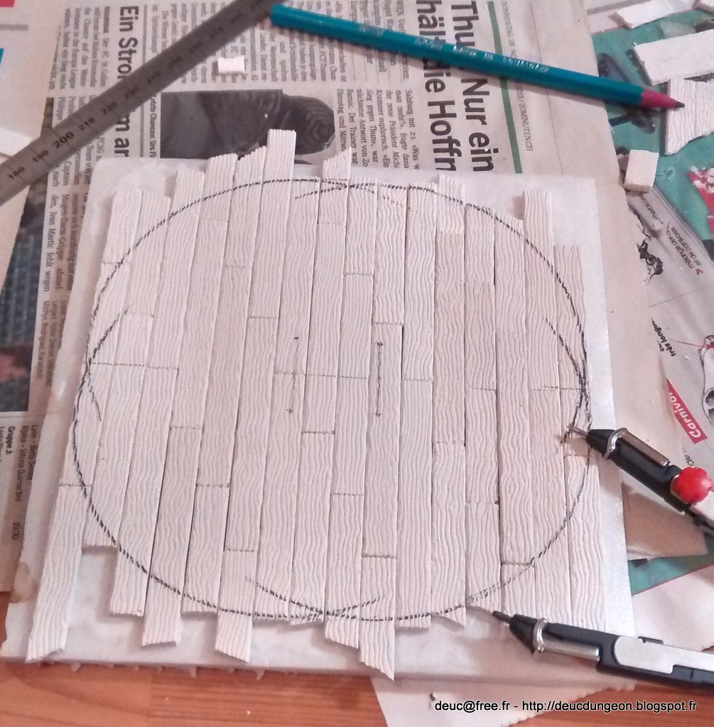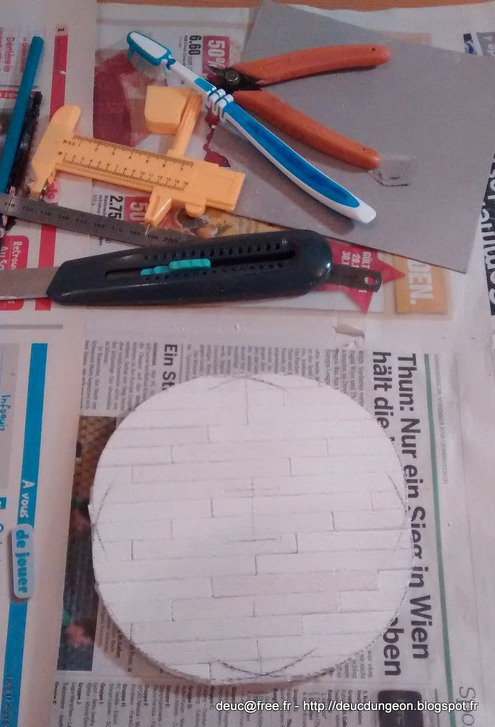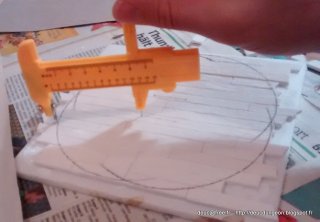 On trace maintenant le contour intérieur de la tour à l\’aide d\’un compas sorti tout droit de mes années lycée. Comme quoi ça a du bon de prendre soin de son matériel.