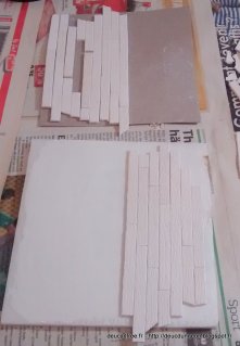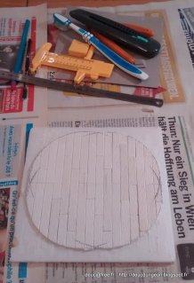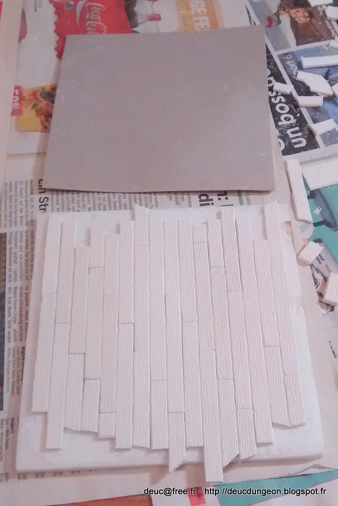 Encollage d\’un morceau de Depron 6 mm et on pose les planches une à une. Je ne me préoccupe pas spécialement de poser les planches au mm,