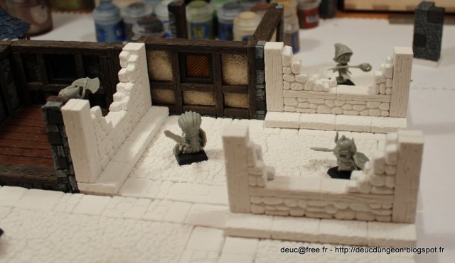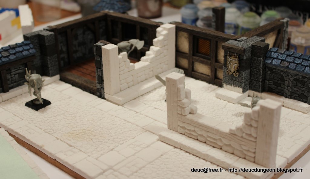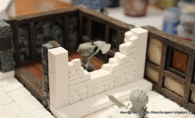 Il n’y a pas à dire, le Ruined Fieldstone Mold #75, est vraiment une tuerie. J’en avais déjà fait un large usage pour les murs du donjon HeroQuest et une fois de plus, il s’avère être la solution parfaite pour suggérer ces façades basses.