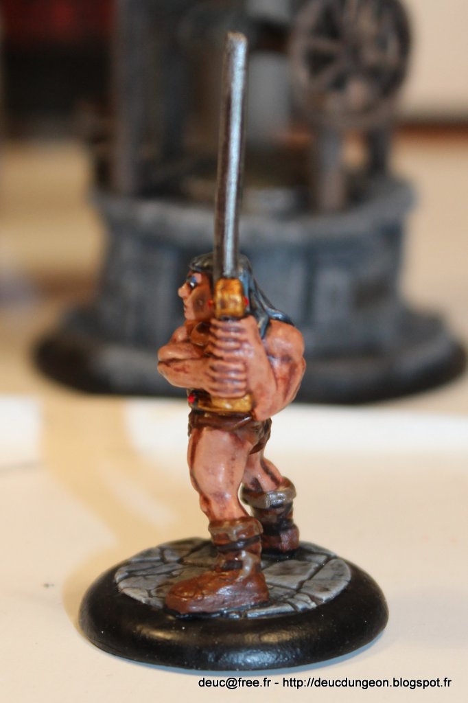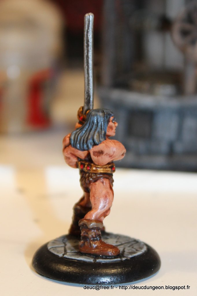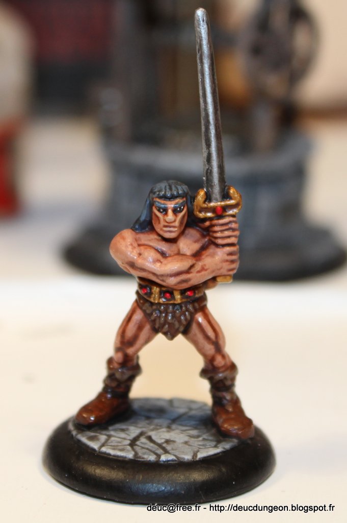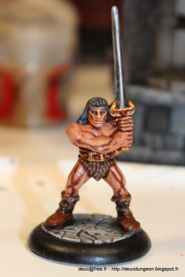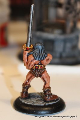Alors parce qu\’il le vaut bien et qu\’il souhaitait voir son Dungeon Roll agrémenté d\’une figurine de héros prêt à descendre dans le donjon pour piller du trésor et se farcir du monstre, j\’ai sorti les pinceaux ces denières semaines et me suis fait plaisir sur une figurine à offrir ô combien charismatique et légendaire: le Barbare du jeu mythique HeroQuest.